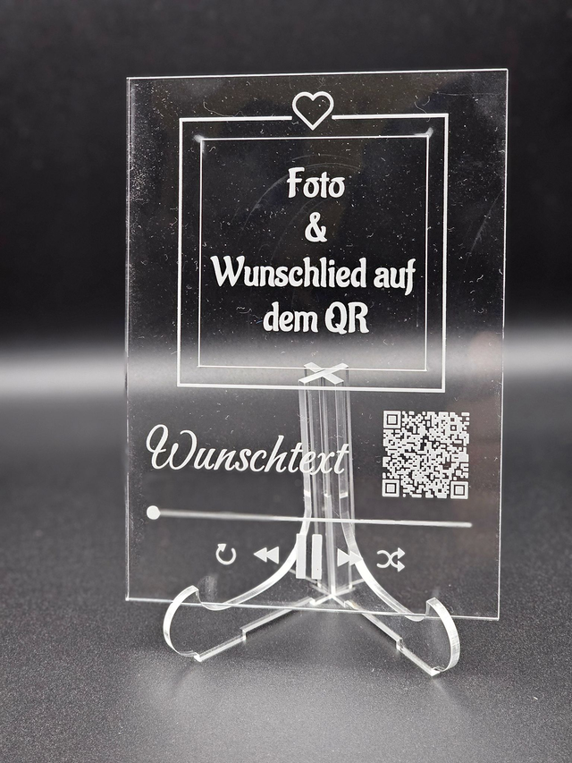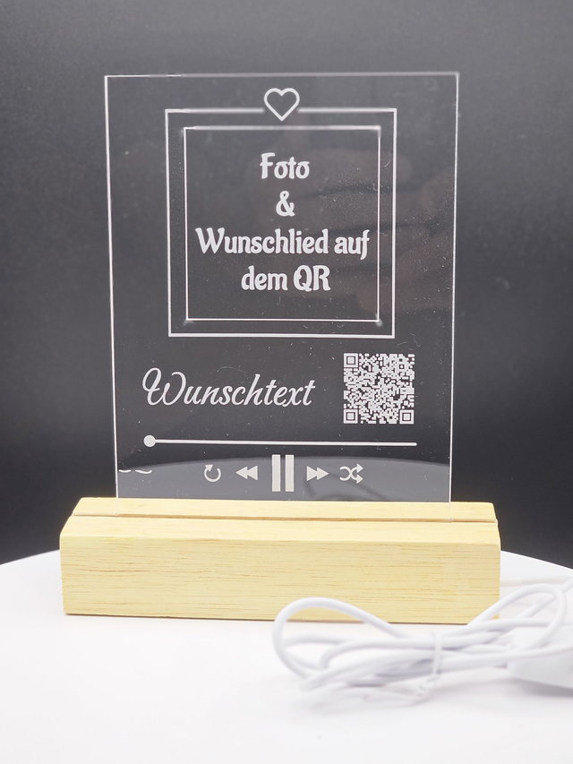 Personalisierte Acryltafel, mit LED, oder Holztafel mit QR-Code – Foto & Wunschlied