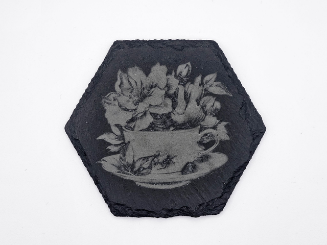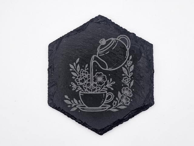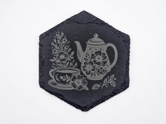 Schiefer Untersetzer mit Kaffee- & Teemotiven – liebevoll graviert