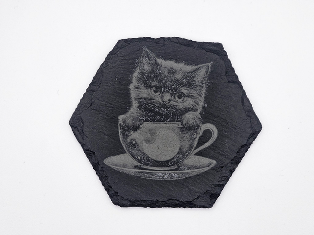 Schiefer Untersetzer mit Kaffee- & Teemotiven - liebevoll graviert