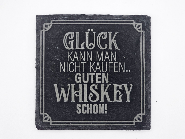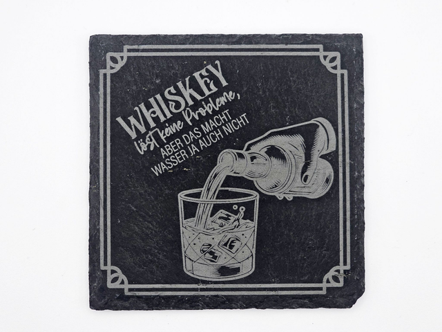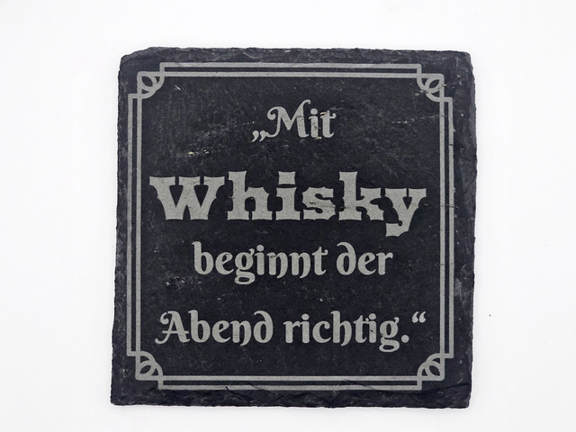 Schiefer Untersetzer mit Whisky-Spruch - graviert & stilvoll