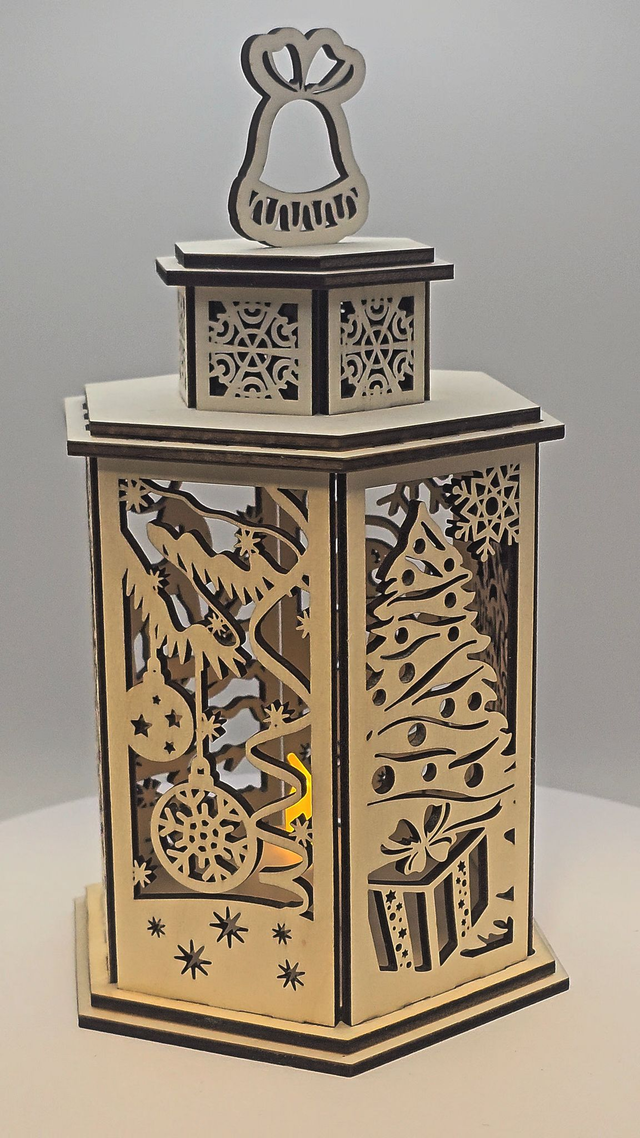 Diese wunderschöne, handgefertigte Laterne aus Holz bringt festliche Stimmung in jedes Zuhause.